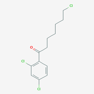 The mechanism of action of 7-Chloro-1-(2,4-dichlorophenyl)-1-oxoheptane involves its interaction with specific molecular targets. The compound’s chlorinated structure allows it to interact with enzymes and proteins, potentially inhibiting their activity. This inhibition can lead to various biological effects, such as antimicrobial or anticancer activity. The exact molecular pathways involved depend on the specific application and target organism.