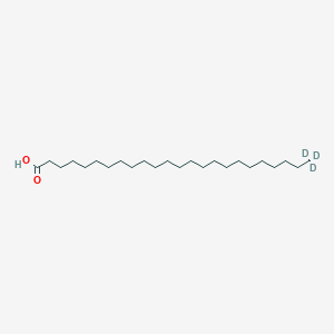 Lignoceric acid-d3 is the deuterium-labeled form of lignoceric acid (tetracosanoic acid), a 24-carbon saturated very-long-chain fatty acid (VLCFA).[1][2] In its natural form, lignoceric acid is synthesized in the developing brain and is a constituent of cerebrosides, important components of the myelin sheath.[3][4][5] Due to its isotopic stability, this compound serves as an invaluable tool in biomedical research, particularly as an internal standard for the precise quantification of its unlabeled counterpart by mass spectrometry. Its application is crucial in the study of metabolic disorders characterized by the accumulation of VLCFAs, such as Zellweger cerebro-hepato-renal syndrome and X-linked adrenoleukodystrophy. Deuterated standards are widely used as tracers to investigate the pharmacokinetics and metabolic pathways of drug molecules.
