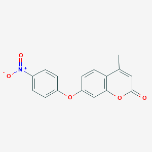 4-Methyl-7-(4-nitrophenoxy)-2H-chromen-2-one is a coumarin derivative with the molecular formula C16H11NO5 and a molecular weight of 297.26 . Coumarin derivatives, also known as benzopyrones, are known to possess many biological activities . this compound displays excitation/emission maxima of 323/445 nm, respectively .