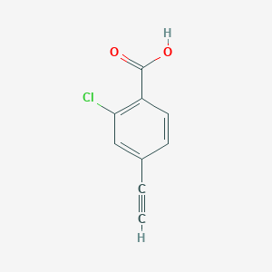 A plausible route starts with a 2-chloro-4-halobenzoic acid ester. This precursor would be reacted with a protected alkyne, like trimethylsilylacetylene, in the presence of a palladium catalyst (e.g., Pd(PPh₃)₂Cl₂) and a base (e.g., triethylamine), with or without a copper(I) salt. The silyl (B83357) protecting group is then removed to yield the terminal alkyne.