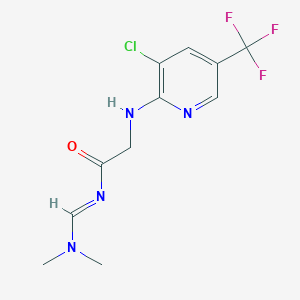 The synthesis of 2-[[3-chloro-5-(trifluoromethyl)pyridin-2-yl]amino]-N-(dimethylaminomethylidene)acetamide typically involves multi-step organic reactions. One common synthetic route starts with the chlorination of 3-amino-5-(trifluoromethyl)pyridine, followed by the introduction of the dimethylaminomethylidene group through a condensation reaction with dimethylformamide dimethyl acetal. The reaction conditions often require controlled temperatures and the use of solvents like dichloromethane or acetonitrile to ensure high yields and purity.