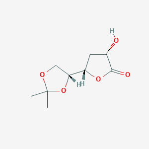 The synthesis of (3S,5S)-5-[(4R)-2,2-dimethyl-1,3-dioxolan-4-yl]-3-hydroxyoxolan-2-one typically involves the use of chiral catalysts and specific reaction conditions to ensure the desired stereochemistry. One common method involves the use of a chiral auxiliary to induce the correct stereochemistry during the formation of the dioxolane ring. The reaction conditions often include controlled temperatures and the use of solvents such as dichloromethane or tetrahydrofuran.