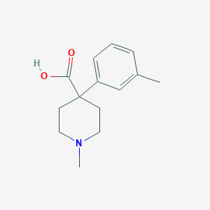 1-Methyl-4-(m-tolyl)piperidine-4-carboxylic acid is a piperidine derivative featuring a carboxylic acid group at the 4-position, a methyl group at the 1-position, and a meta-tolyl (3-methylphenyl) substituent at the 4-position. Piperidine-based carboxylic acids are pivotal in medicinal chemistry due to their structural versatility, enabling interactions with biological targets such as enzymes and receptors.
