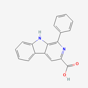 The synthesis of 1-phenyl-9H-pyrido[3,4-b]indole-3-carboxylic acid can be achieved through several synthetic routes. One common method involves the Fischer indole synthesis, which is a well-known reaction for constructing indole rings. In this method, an optically active cyclohexanone is reacted with phenylhydrazine hydrochloride in the presence of methanesulfonic acid under reflux conditions in methanol. This reaction yields the corresponding tricyclic indole in good yield .