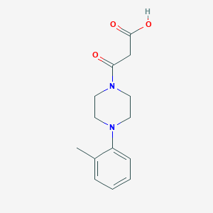3-[4-(2-Methylphenyl)piperazin-1-yl]-3-oxopropanoic acid, also known as a piperazine derivative, is a compound of significant interest in medicinal chemistry due to its diverse biological activities. This compound features a piperazine ring substituted with a 2-methylphenyl group and a propanoic acid moiety, which contributes to its unique pharmacological properties.