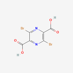 The compound this compound is a molecule of significant interest, though it remains relatively under-explored in the scientific literature. Its structure combines the key features discussed above: a pyrazine core, two dicarboxylic acid functional groups for coordination and hydrogen bonding, and two bromine atoms for synthetic modification and halogen bonding.