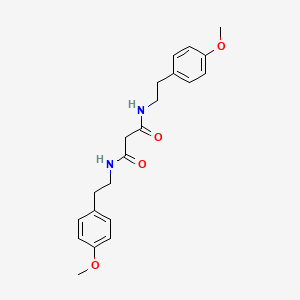 The synthesis of N,N’-bis[2-(4-methoxyphenyl)ethyl]propanediamide typically involves the reaction of 4-methoxyphenethylamine with malonyl chloride under controlled conditions. The reaction is carried out in the presence of a base, such as triethylamine, to neutralize the hydrochloric acid formed during the reaction. The product is then purified using standard techniques such as recrystallization or chromatography .