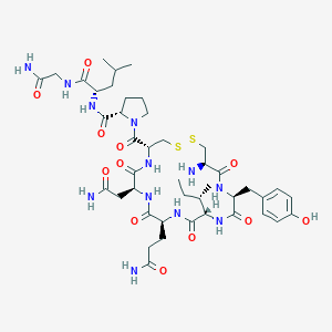 InChI=1S/C43H66N12O12S2/c1-5-22(4)35-42(66)49-26(12-13-32(45)57)38(62)51-29(17-33(46)58)39(63)53-30(20-69-68-19-25(44)36(60)50-28(40(64)54-35)16-23-8-10-24(56)11-9-23)43(67)55-14-6-7-31(55)41(65)52-27(15-21(2)3)37(61)48-18-34(47)59/h8-11,21-22,25-31,35,56H,5-7,12-20,44H2,1-4H3,(H2,45,57)(H2,46,58)(H2,47,59)(H,48,61)(H,49,66)(H,50,60)(H,51,62)(H,52,65)(H,53,63)(H,54,64)/t22-,25-,26-,27-,28-,29-,30-,31-,35-/m0/s1 | |