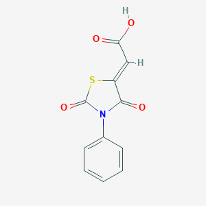 The mechanism of action of (Z)-2-(2,4-dioxo-3-phenylthiazolidin-5-ylidene)acetic acid involves its interaction with specific molecular targets, such as enzymes or receptors. These interactions can modulate various biochemical pathways, leading to the observed biological effects. For example, the compound may inhibit enzyme activity or bind to receptors, altering cellular signaling and function.