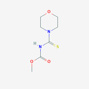 The synthesis of Methyl 4-morpholinylcarbothioylcarbamate involves the formation of carbamate (B1207046) and thiourea (B124793) linkages. While specific experimental or computational studies on the reaction pathway for this exact molecule are not prevalent in the reviewed literature, plausible mechanisms can be proposed and analyzed using quantum chemical methods. A likely synthetic route involves the reaction of a morpholine-derived isothiocyanate with methyl carbamate, or the reaction of methoxycarbonyl isothiocyanate with morpholine (B109124).