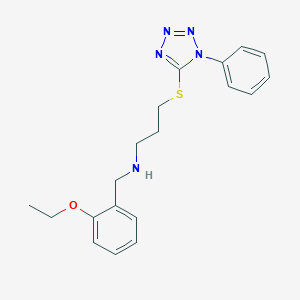 [(2-ETHOXYPHENYL)METHYL]({3-[(1-PHENYL-1H-1,2,3,4-TETRAZOL-5-YL)SULFANYL]PROPYL})AMINE is a complex organic compound that features a benzyl group, an ethoxy group, a tetrazole ring, and a thioether linkage