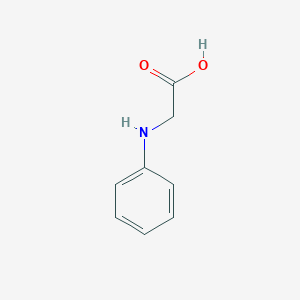 Another classical method for synthesizing α-amino acids, the Strecker synthesis, discovered by Adolph Strecker in 1850, was also adapted for the production of this compound. This route involves the reaction of aniline, formaldehyde (B43269), and hydrogen cyanide, followed by hydrolysis of the resulting α-aminonitrile.[4][5]