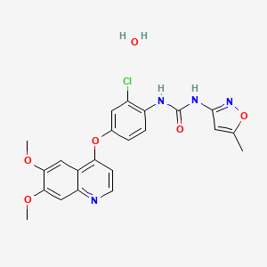 InChI=1S/C22H19ClN4O5.H2O/c1-12-8-21(27-32-12)26-22(28)25-16-5-4-13(9-15(16)23)31-18-6-7-24-17-11-20(30-3)19(29-2)10-14(17)18;/h4-11H,1-3H3,(H2,25,26,27,28);1H2 | |