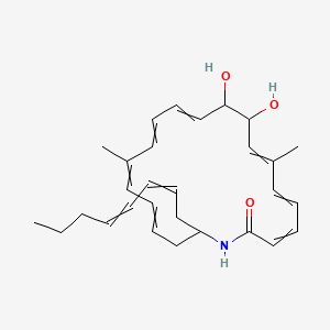 The compound this compound belongs to a family of structurally related polyene macrolactams that have been isolated from actinomycete bacteria, particularly from the genus Streptomyces. Based on the structural similarity to characterized compounds within this family, the taxonomic origin can be established through comparison with well-documented analogs. The closely related compound 9,10-dihydroxy-7,15-dimethyl-20-(2-hexenyl)azacycloeicosa-3,5,7,11,13,15,17-heptaen-2-one, also known as BE-14106, has been reported in Streptomyces and Actinoalloteichus cyanogriseus, indicating that the target compound likely shares similar microbial origins.