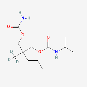 Synthetic Routes and Reaction Conditions: The synthesis of Carisoprodol-d3 involves the incorporation of deuterium atoms into the carisoprodol molecule. This can be achieved through various methods, including the use of deuterated reagents or solvents during the synthesis process. The general synthetic route involves the reaction of 2-methyl-2-propyl-1,3-propanediol with isopropyl isocyanate to form the carbamate ester. The deuterium atoms can be introduced at specific stages of the synthesis to ensure their incorporation into the final product .