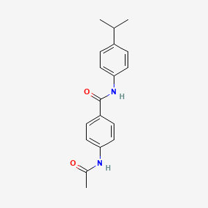 The synthesis of 4-ACETAMIDO-N-[4-(PROPAN-2-YL)PHENYL]BENZAMIDE typically involves multiple steps. One common synthetic route includes the acylation of aniline derivatives followed by coupling reactions. Industrial production methods may involve optimized reaction conditions to maximize yield and purity. Specific details on the reaction conditions and reagents used in these processes are often proprietary and may vary depending on the desired application .