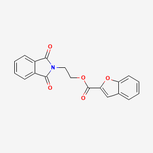 The mechanism of action of 2-(1,3-Dioxoisoindolin-2-yl)ethyl benzofuran-2-carboxylate involves its interaction with specific molecular targets, such as enzymes or receptors. The compound’s structure allows it to bind to these targets, potentially inhibiting or modifying their activity. This interaction can lead to various biological effects, depending on the specific target and pathway involved .