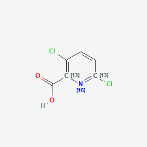 3,6-dichloro(2,6-13C2,115N)pyridine-2-carboxylic acid undergoes various chemical reactions, including oxidation, reduction, and substitution. Common reagents used in these reactions include oxidizing agents like potassium permanganate and reducing agents like sodium borohydride. The major products formed from these reactions depend on the specific conditions and reagents used. For example, oxidation of this compound can lead to the formation of 3,6-dichloropyridine-2-carboxylic acid derivatives .