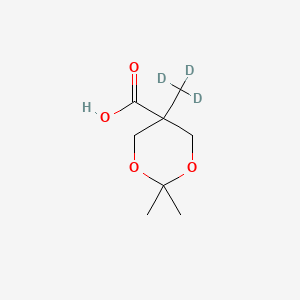 2,2,5-Trimethyl-1,3-dioxane-5-carboxylic Acid-d3 is a deuterated compound that serves as a valuable tool in various scientific research domains, particularly in chemistry and biology. Its unique structural properties and isotopic labeling make it suitable for applications in nuclear magnetic resonance (NMR) spectroscopy and metabolic studies. This article explores its biological activity, mechanisms of action, and relevant research findings.