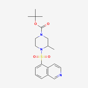 The mechanism of action of tert-butyl 4-(isoquinoline-5-sulfonyl)-3-methylpiperazine-1-carboxylate involves its interaction with specific molecular targets. . The compound binds to the active site of the kinase, preventing its phosphorylation and subsequent activation. This inhibition can disrupt various cellular pathways involved in cell proliferation and survival, making it a potential candidate for cancer therapy.