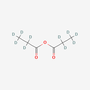 Propionic anhydride-d10 is a deuterated form of propionic anhydride, commonly used in biological research for isotopic labeling in mass spectrometry and proteomics. The compound is significant in studies related to metabolic pathways, histone modifications, and protein interactions. This article explores the biological activity of this compound, focusing on its applications, mechanisms of action, and relevant research findings.