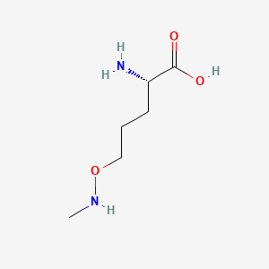 5-[(Methylamino)oxy]-L-norvaline is a chemically modified amino acid derivative characterized by a methylaminooxy (-O-NH-CH₃) substituent at the 5-position of the L-norvaline backbone. Such derivatives are often studied for their roles in enzyme inhibition, metabolic pathway modulation, and applications in chemical biology .