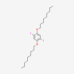 This compound can be synthesized through a multi-step process involving the iodination of 2,5-dihydroxy-1,4-bis(nonyloxy)benzene. The synthesis typically employs iodine and an oxidizing agent like potassium iodate under controlled temperature and pH conditions to ensure selective iodination.