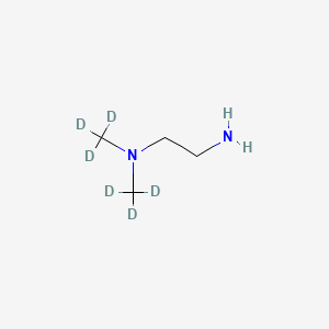 This compound is an ideal internal standard for the quantification of its non-labeled counterpart, N,N-Dimethylethanediamine. The six deuterium atoms are typically located on the two methyl groups, replacing hydrogen atoms. This substitution results in a molecule that co-elutes with the analyte in chromatographic systems but is readily distinguishable by a mass spectrometer due to its higher mass.