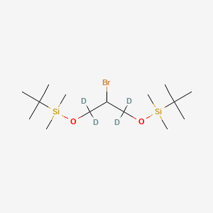 2-Bromo-1,3-bis(tert-butyldimethylsilyloxy)propane-d4 is a deuterium-labeled compound widely utilized in scientific research due to its stable isotope labeling. This compound is particularly significant in studies related to metabolic pathways, environmental analysis, and organic chemistry. The incorporation of deuterium allows for enhanced tracking and analysis in various biological and chemical processes.