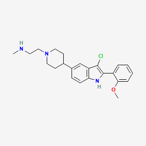 3-Chloro-2-(2-methoxyphenyl)-6-[N-(2-methylaminoethyl)pyperidin-4-yl]indole is a complex organic compound with a unique structure that includes an indole core, a piperidine ring, and various functional groups. This compound is of significant interest in the fields of medicinal chemistry and pharmacology due to its potential therapeutic applications.