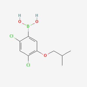 2,4-dichloro-5-isobutoxyphenylboronic acid is a substituted aromatic boronic acid. Boronic acids are a class of compounds characterized by a carbon-boron bond and are widely utilized in organic chemistry, particularly in palladium-catalyzed cross-coupling reactions such as the Suzuki-Miyaura coupling. This specific molecule's structure, featuring a dichlorinated phenyl ring with an isobutoxy ether group, suggests its potential utility as a building block in the synthesis of more complex molecules, particularly in the fields of medicinal chemistry and materials science.