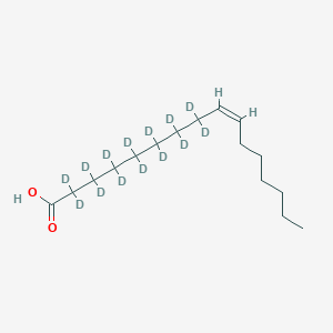 This compound is a deuterated form of palmitoleic acid, commonly used as an internal standard for its quantification in mass spectrometry applications. While some safety data sheets classify it as not a hazardous substance or mixture, it should be handled with care as it has not been fully validated for medical applications and is intended for research use only.