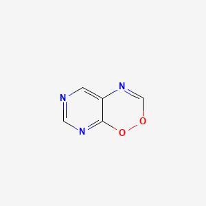 The fundamental structure of pyrimido[5,4-e]dioxazine is a tricyclic system where a pyrimidine (B1678525) ring is fused to a 1,2,4-dioxazine ring. The precise spatial arrangement of nitrogen and oxygen atoms within this framework is believed to be a critical determinant of its interaction with biological targets. The nitrogen atoms of the pyrimidine ring can act as hydrogen bond acceptors, while the dioxazine portion introduces a unique conformational constraint and potential for further interactions.