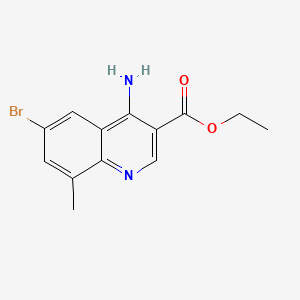 The mechanism of action of 4-Amino-6-bromo-8-methylquinoline-3-carboxylic acid ethyl ester involves its interaction with specific molecular targets. For example, it may inhibit certain enzymes by binding to their active sites, thereby blocking their activity. The pathways involved can include inhibition of DNA synthesis or disruption of cell membrane integrity .