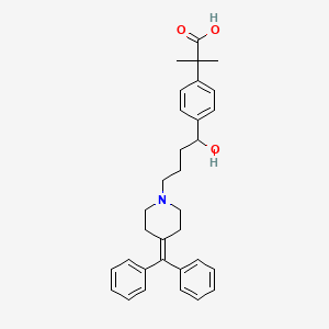 The compound’s IUPAC name is 2-[4-[4-(4-(diphenylmethylene)piperidin-1-yl)-1-hydroxybutyl]phenyl]-2-methylpropanoic acid . This name reflects its hierarchical structure: