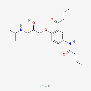 - IUPAC Name : N-[3-butanoyl-4-[2-hydroxy-3-(propan-2-ylamino)propoxy]phenyl]butanamide;hydrochloride