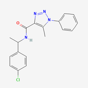 The molecular formula of N-[1-(4-chlorophenyl)ethyl]-5-methyl-1-phenyl-1H-1,2,3-triazole-4-carboxamide is C18H19ClN4O. The compound features a triazole ring, which is known for its biological activity, particularly in antimicrobial and anticancer applications.