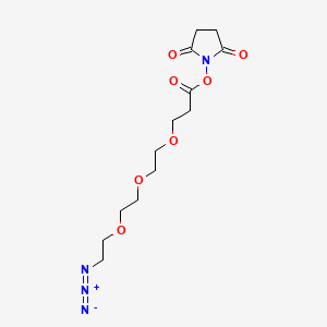 This compound is a precisely engineered molecule designed for two-step sequential conjugations. Its structure consists of three critical components: an amine-reactive N-hydroxysuccinimide (NHS) ester, a bioorthogonal azide group, and a hydrophilic 3-unit polyethylene glycol (PEG) spacer that connects them. This trifecta of functionalities provides a powerful tool for linking a wide array of molecules with high specificity and efficiency.