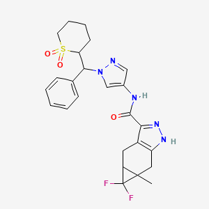 InChI=1S/C25H27F2N5O3S/c1-24-12-18-17(11-20(24)25(24,26)27)21(31-30-18)23(33)29-16-13-28-32(14-16)22(15-7-3-2-4-8-15)19-9-5-6-10-36(19,34)35/h2-4,7-8,13-14,19-20,22H,5-6,9-12H2,1H3,(H,29,33)(H,30,31) | |