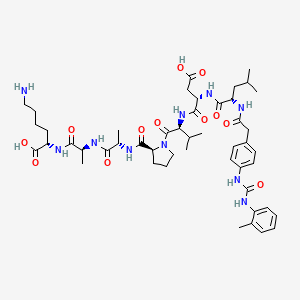 CC1=CC=CC=C1NC(=O)NC2=CC=C(C=C2)CC(=O)N[C@@H](CC(C)C)C(=O)N[C@@H](CC(=O)O)C(=O)N[C@@H](C(C)C)C(=O)N3CCC[C@H]3C(=O)N[C@@H](C)C(=O)N[C@@H](C)C(=O)N[C@@H](CCCCN)C(=O)O | |