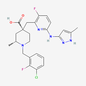 (2R,4R)-1-[(3-chloro-2-fluorophenyl)methyl]-4-[[3-fluoro-6-[(5-methyl-1H-pyrazol-3-yl)amino]pyridin-2-yl]methyl]-2-methylpiperidine-4-carboxylic acid | |
