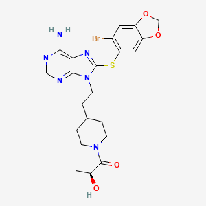 (2S)-1-[4-[2-[6-amino-8-[(6-bromo-1,3-benzodioxol-5-yl)sulfanyl]purin-9-yl]ethyl]piperidin-1-yl]-2-hydroxypropan-1-one | |