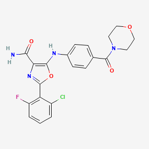 C1COCCN1C(=O)C2=CC=C(C=C2)NC3=C(N=C(O3)C4=C(C=CC=C4Cl)F)C(=O)N | |