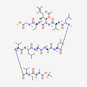 This compound, identified by the CAS number 882506-05-0, is a large, protected peptide molecule. Its descriptive chemical name, Boc-D-MeAla-EtVal-Val-MeLeu-Ala-D-Ala-MeLeu-MeLeu-MeVal-MeBmt(OAc)-Abu-Sar-OMe, reveals its amino acid sequence and the protecting groups utilized during synthesis. These protecting groups, including the Boc (tert-butyloxycarbonyl) group on the N-terminus and the methyl ester (-OMe) on the C-terminus, are essential for preventing unwanted side reactions during the step-wise assembly of the peptide chain. The acetate (B1210297) group (OAc) on the unique MeBmt residue is another key protecting group.