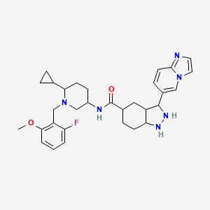 COC1=C(C(=CC=C1)F)CN2CC(CCC2C3CC3)NC(=O)C4CCC5C(C4)C(NN5)C6=CN7C=CN=C7C=C6 | |