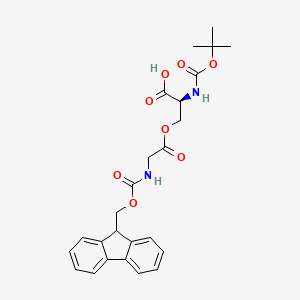Boc-Ser(Fmoc-Gly)-OH is a derivative of serine that plays a significant role in peptide synthesis, particularly in the context of solid-phase peptide synthesis (SPPS). This compound is characterized by its unique structural features, including the Boc (tert-butyloxycarbonyl) protecting group on the amino group and the Fmoc (9-fluorenylmethoxycarbonyl) protecting group on the hydroxyl group. The biological activity of this compound can be explored through its role in peptide synthesis, stability, and potential applications in drug development.
