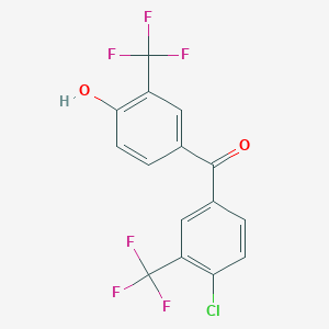 The mechanism of action of 3,3’-Bis(trifluoromethyl)-4-chloro-4’-hydroxy-benzophenone involves its interaction with specific molecular targets and pathways. The trifluoromethyl groups enhance the compound’s lipophilicity, allowing it to interact with lipid membranes and proteins more effectively. This interaction can modulate various biological pathways, including enzyme inhibition and receptor binding .