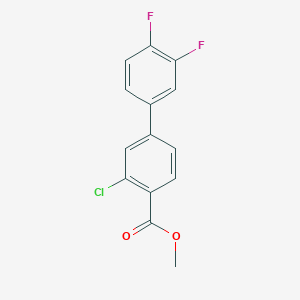 The synthesis of Methyl 2-chloro-4-(3,4-difluorophenyl)benzoate typically involves the esterification of 2-chloro-4-(3,4-difluorophenyl)benzoic acid with methanol in the presence of a catalyst such as sulfuric acid. The reaction is carried out under reflux conditions to ensure complete conversion of the acid to the ester.