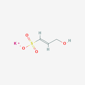 The synthesis of potassium;(E)-3-hydroxyprop-1-ene-1-sulfonate typically involves the reaction of (E)-3-hydroxyprop-1-ene-1-sulfonic acid with a potassium base. The reaction is carried out in an aqueous medium, where the sulfonic acid is neutralized by the potassium base, resulting in the formation of the potassium salt. The reaction conditions generally include maintaining a controlled temperature and pH to ensure the complete conversion of the acid to its potassium salt form.