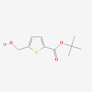 The mechanism by which 5-Hydroxymethyl-thiophene-2-carboxylic acid tert-butyl ester exerts its effects depends on its specific application. In drug development, it may interact with molecular targets such as enzymes or receptors, leading to biological responses. The exact pathways involved would depend on the derivative and its intended use.